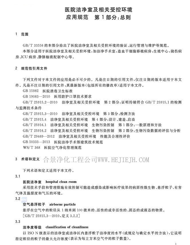醫(yī)院潔凈室及相關受控環(huán)境應用規(guī)范(GB/T33556.1-2017)完整版