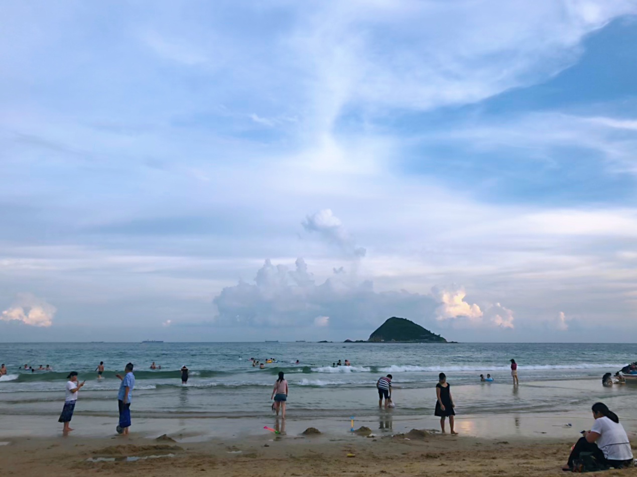 夕陽(yáng)西下,余輝鋪在沙灘上,金光閃閃,小伙伴們?cè)谙硎芡晁{(lán)天、白云、調(diào)皮的海浪、細(xì)膩的沙灘之后仍意猶未盡,拎著各自的拖鞋,踏著“金光大道”倆倆成對(duì)、三人成群,一起共赴下一個(gè)活動(dòng)現(xiàn)場(chǎng)。