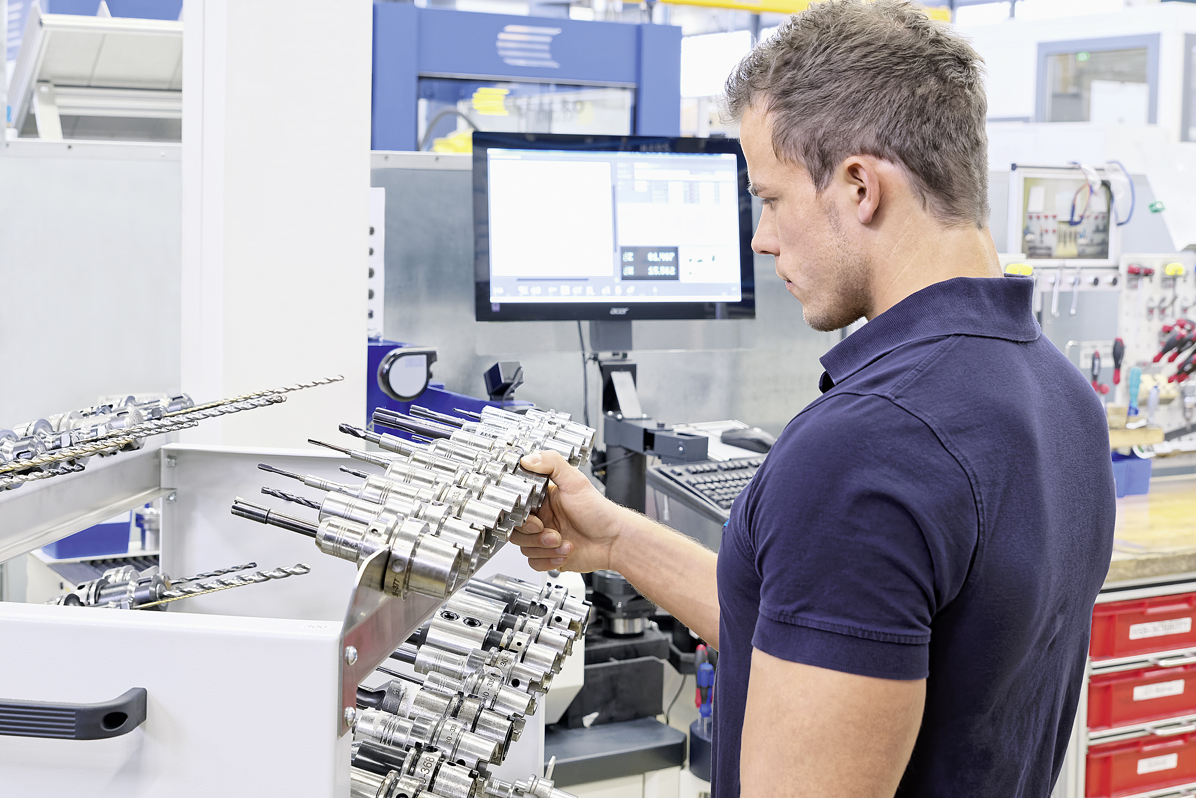 SCHUNK作為抓取系統(tǒng)和夾持技術(shù)的領(lǐng)導(dǎo)的,以“從實踐中學(xué)習(xí)”為公司理念。SCHUNK工作人員發(fā)現(xiàn)在金屬切削加工中經(jīng)常發(fā)生諸如機床操作人員從常規(guī)的擱架上取出刀具時,上臂容易被鄰近的刀具邊緣割傷等問題,為了解決該實際問題,SCHUNK在Mengen工廠的卡盤和工件夾持技術(shù)應(yīng)用中心進行內(nèi)部持續(xù)研發(fā)改進,開發(fā)了一款緊湊型刀具小車,可安裝多達156個刀具,可在日常操作中提供保護以防割傷,具有專利的推進系統(tǒng),為可機器提供額外的存儲空間。該研究項目目的是在機器外部搬運和存放刀具時,將受傷風(fēng)險將至最低。