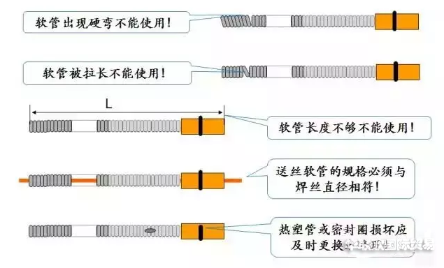 •軟管變形:軟管因擠壓變形或出現(xiàn)硬彎均會明顯增大送絲阻力。