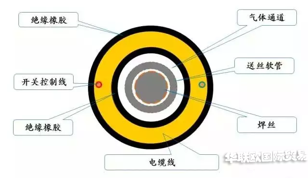 作用:作為電極傳遞焊接電流;經(jīng)送絲軟管和一線制電纜向焊接部位輸送焊絲和氣體;通過BINZEL焊槍開關(guān)向焊機發(fā)出控制命令要求;送絲均勻,導電可靠及氣體保護良好;結(jié)構(gòu)簡單、經(jīng)久耐用、輕便、柔軟、使用性能良好。