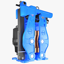 隨著機(jī)電轉(zhuǎn)子制動器USBW-150的發(fā)展,著名的SIBER USB技術(shù)現(xiàn)在也可用于風(fēng)力發(fā)電。該制動器通過電子控制可變的制動扭矩,自動調(diào)整接觸壓力的SET / ACTUAL值,有較大的制動器開口,使更換制動片更加容易,適用于低溫和海上應(yīng)用。