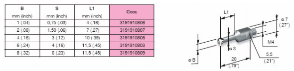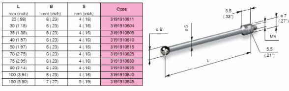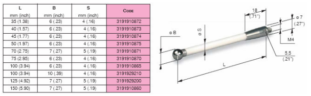 MARPOSS側(cè)桿根據(jù)客戶需求可以提供陶瓷和鋼兩種材質(zhì)的測桿。在選擇測桿的時(shí)候,應(yīng)盡可能使用最短的測桿當(dāng)必須使用長的測桿時(shí),最好選擇陶瓷材料的測桿,盡可能避免使用延長測桿,特殊測桿可以特殊訂購。