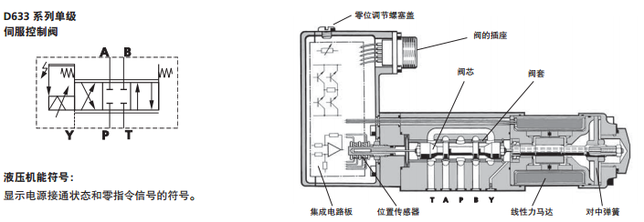 MOOG伺服閥D633系列屬于直動(dòng)式伺服控制閥,可應(yīng)用于三通、四通和2*2通的節(jié)流型流量控制閥。適用于電液位置、速度、壓力或力控制系統(tǒng)以及其他需要高動(dòng)態(tài)響應(yīng)的系統(tǒng)。D633系列伺服閥無(wú)需先導(dǎo)油源,通過(guò)具有高驅(qū)動(dòng)力的永磁式線性力馬達(dá)直接驅(qū)動(dòng),具有電氣零位調(diào)節(jié)功能,當(dāng)斷電或電纜損壞或緊急停車(chē)時(shí),閥芯會(huì)無(wú)需使用外力自動(dòng)返回到其彈簧對(duì)中位置。