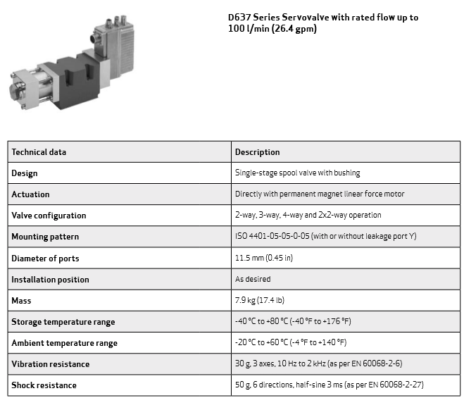 穆格公司已生產伺服閥和伺服比例、集成電子閥等有30多年的歷史,moog閥適用于各類機應用程序的使用。MOOG伺服閥D636-D637系列屬于直動式伺服控制閥,可應用于三通、四通和2*2通的節(jié)流型流量控制閥。適用于電液位置、速度、壓力或力控制系統(tǒng)以及其他需要高動態(tài)響應的系統(tǒng)。D636-D637系列伺服閥無需先導油源,通過具有高驅動力的永磁式線性力馬達直接驅動,具有電氣零位調節(jié)功能,當斷電或電纜損壞或緊急停車時,閥芯會無需使用外力自動返回到其彈簧對中位置。伺服閥直線力馬達具有高力范圍內提供無流量限制,直接驅動的設計意味著壓力無關的動態(tài)性能,低電流消耗和近零液壓,集成的數(shù)字電子很靈活性,現(xiàn)場總線接口高等級。