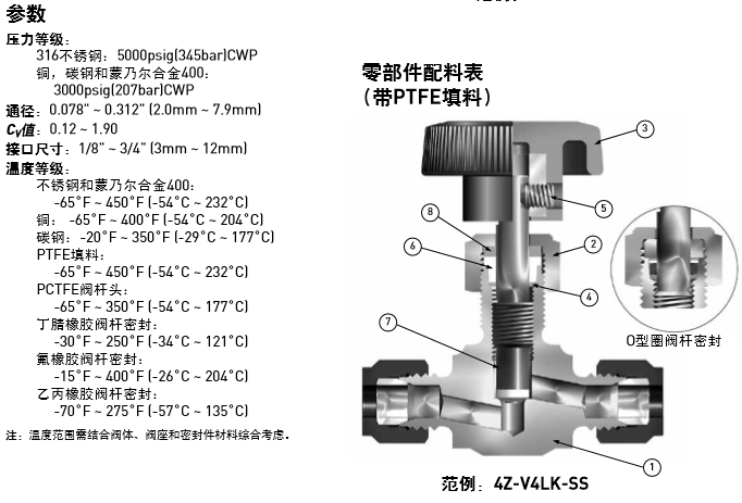 PARKER針閥強(qiáng)化的閥桿與冷加工閥體螺紋間形成硬度差可以利于提高閥門循環(huán)壽命 ,316不銹鋼,碳鋼,銅和蒙乃爾合金400材質(zhì)可選,有PTFE材質(zhì)填料和O型圈閥桿密封件可選,100%工廠測試 。