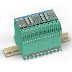 P+F得到廣泛應用的K系列本安型隔離式安全柵采用DIN導軌安裝,靈活方便。K系列安全柵可以插接到與DIN軌道組裝在一起的電源導軌上,簡便易行。此安裝方式,相對于DIN導軌安裝而言,可極大節(jié)省了模塊供電端的電源線及接線。